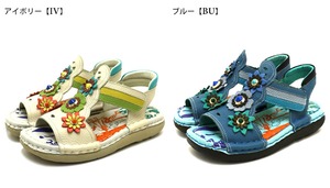 TGE309【レディース】Estacion~エスタシオン~・フラワーモチーフ本革ストラップサンダル
