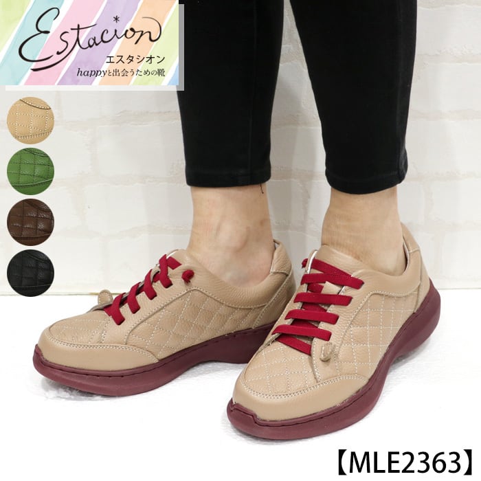 MLE2363【レディース】キルティングデザイン本革エアサイクルスニーカー