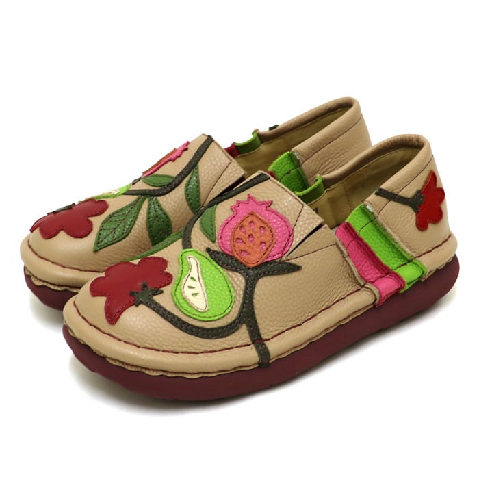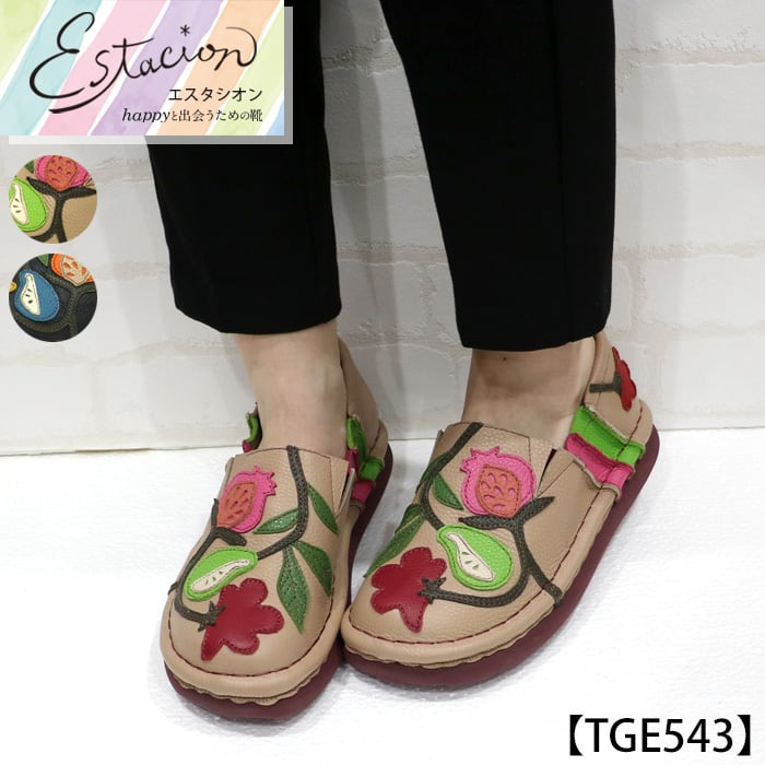 TGE543【レディース/受注生産可】Estacion~エスタシオン~・花モチーフ本革スリッポンシューズ