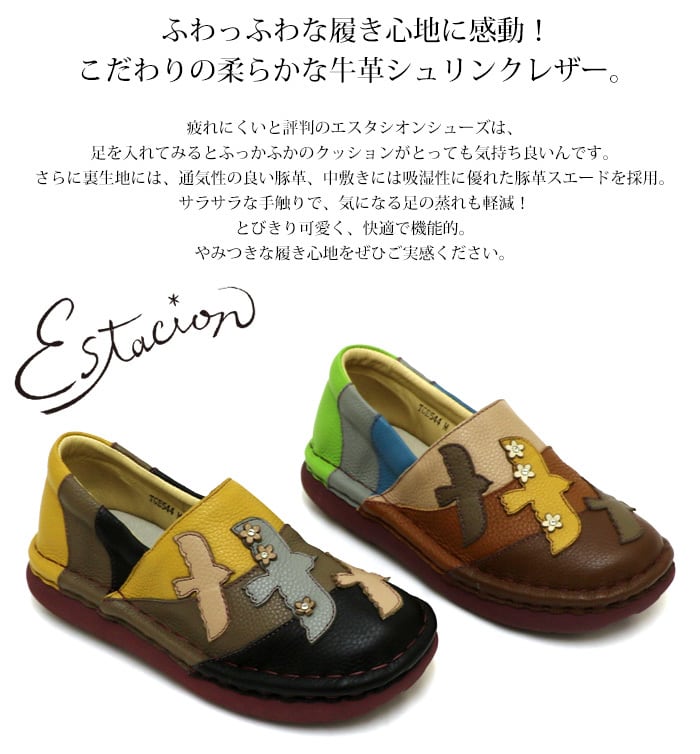 スリッポン.エスタシオン.スニーカー.靴.レディース.estacion.レザー.コンフォート.フラット.新作.ローヒール.軽量.本革.歩きやすい.カラフル.カジュアル.花.フラワー.SS.S.M.L.LL.22.0cm.22.5cm.23.0cm.23.5cm.24.0cm.24.5cm.25.0cm