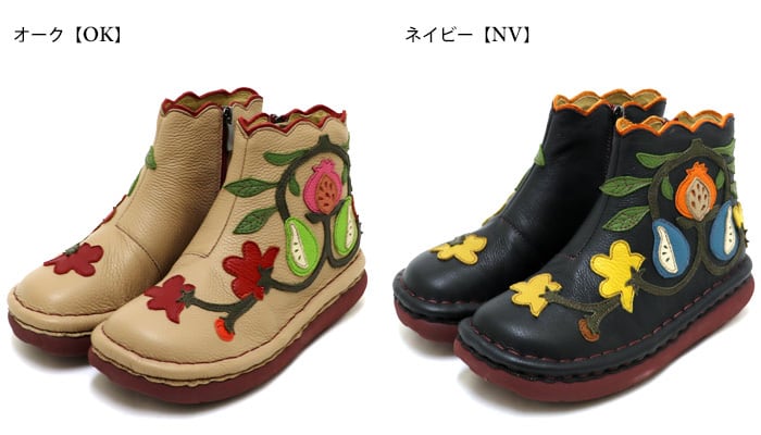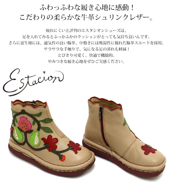 TGE545【レディース/受注生産可】Estacion~エスタシオン~・花モチーフ本革ショートブーツ