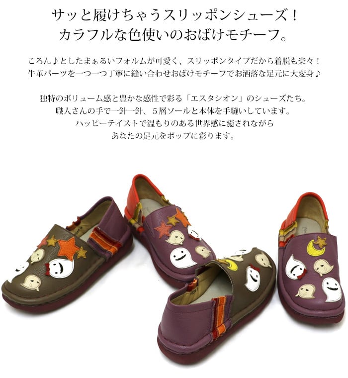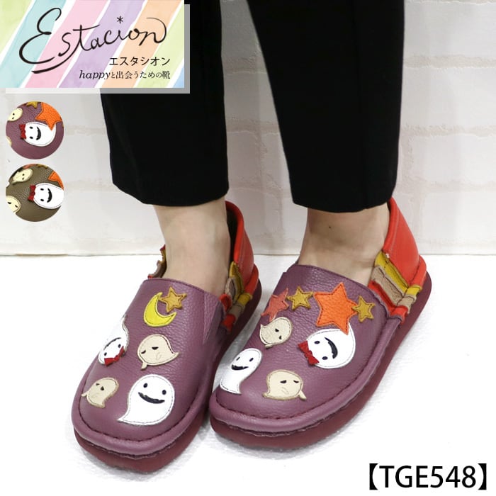 TGE548【レディース/受注生産可】Estacion~エスタシオン~・おばけモチーフ本革スリッポンシューズ