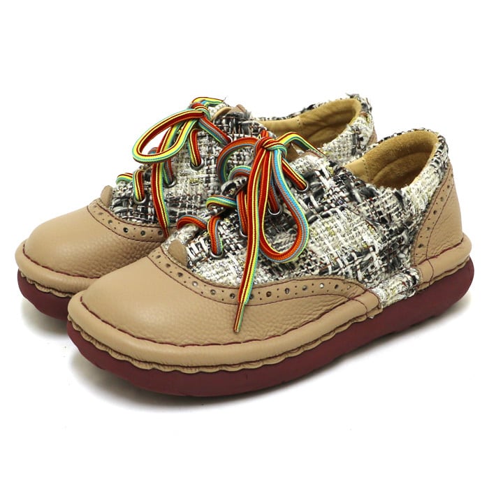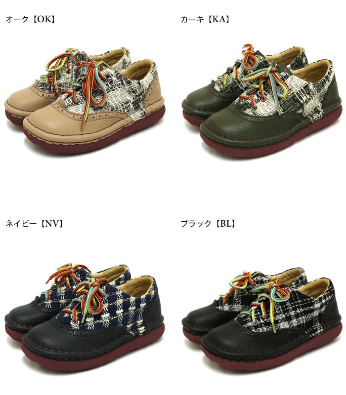 TGE551【レディース】Estacion~エスタシオン~・ツイードmixレースアップ本革スニーカー