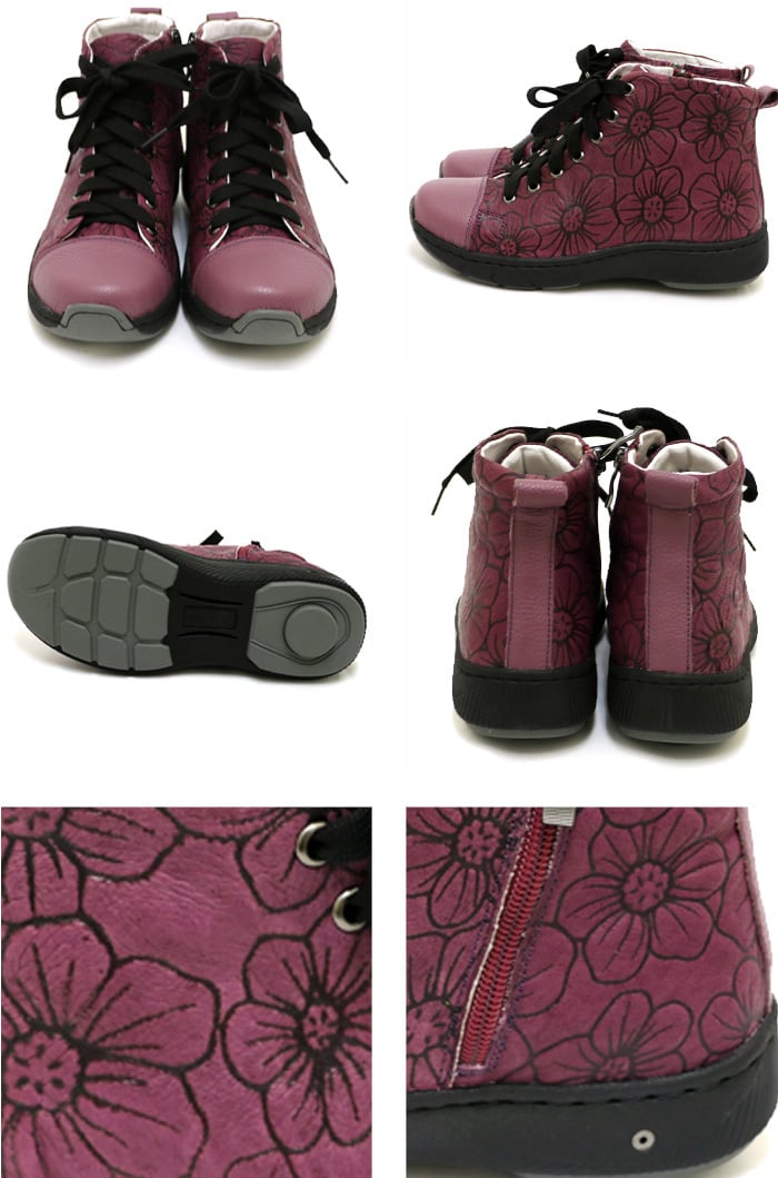 Y885AP【レディース】Estacion~エスタシオン~・花柄型押しエアサイクル本革ショートブーツ