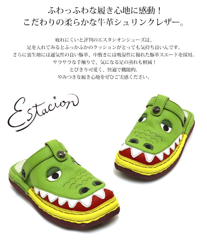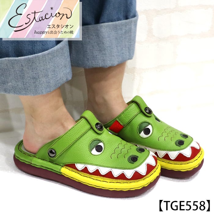 TGE558【レディース/受注生産可】Estacion~エスタシオン~・ワニモチーフ2way本革サボシューズ