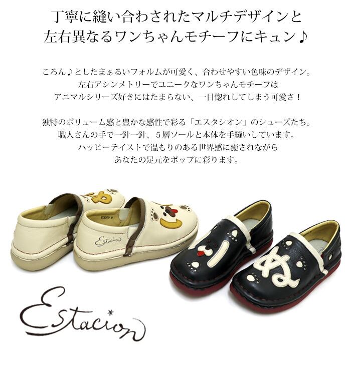 TGE574【レディース/受注生産可】Estacion~エスタシオン~・いぬモチーフ本革スリッポンシューズ