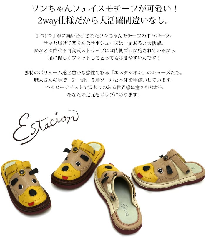 TGE564【レディース/受注生産可】Estacion~エスタシオン~・ワンちゃんモチーフ2way本革サボシューズ【tge564】
