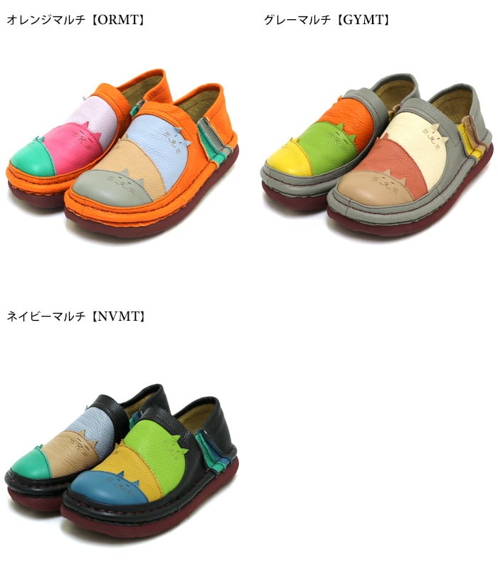 TGE565【レディース/受注生産可】Estacion~エスタシオン~・ネコちゃんモチーフ本革スリッポンシューズ【tge565】