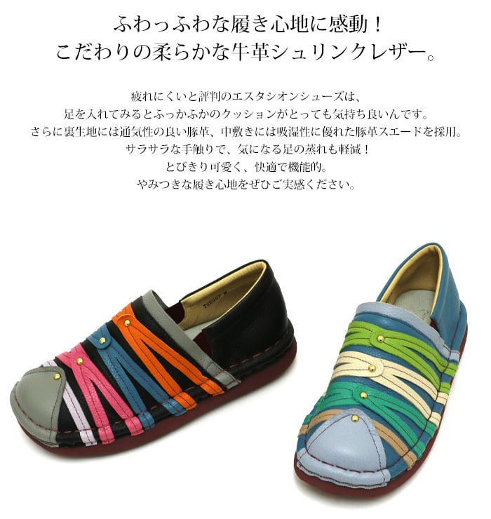 TGE557【レディース/受注生産可】Estacion~エスタシオン~・カラフルライン本革スリッポンシューズ