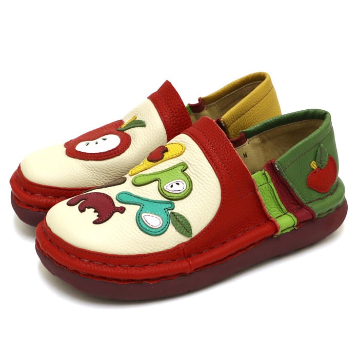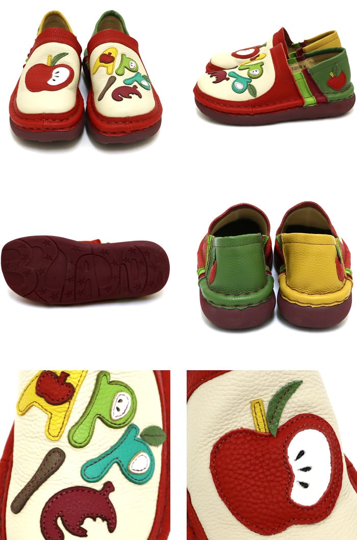 TGE597【レディース/受注生産可】Estacion~エスタシオン~・りんごモチーフ本革スリッポンシューズ