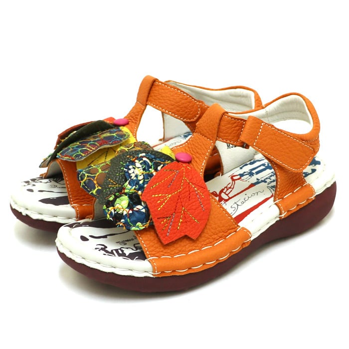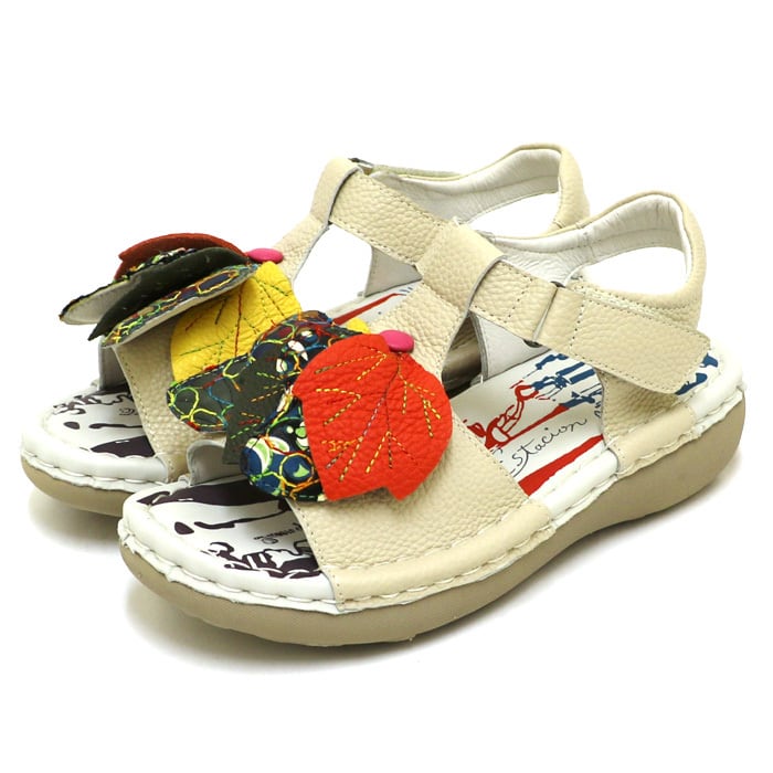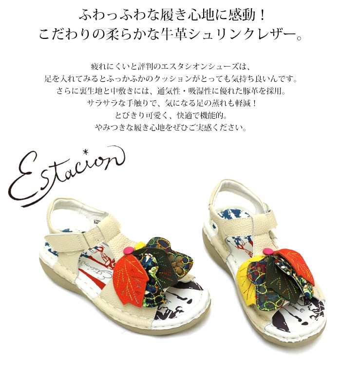 MSE212【レディース】Estacion~エスタシオン~・フラワーモチーフ本革ストラップサンダル