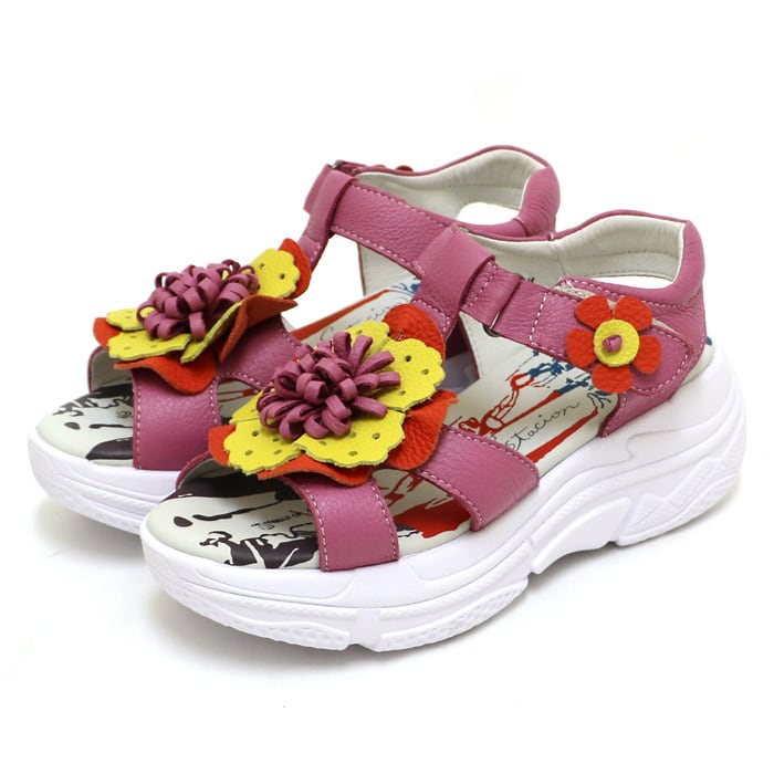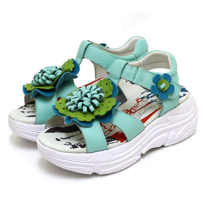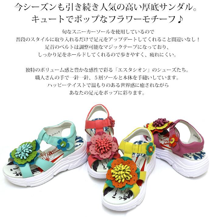 XZ1912【レディース】Estacion~エスタシオン~・フラワーチーフ本革スニーカーソールサンダル