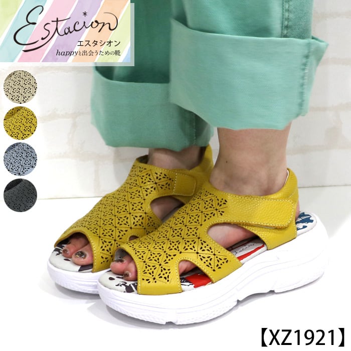 XZ1921【レディース】Estacion~エスタシオン~・パンチング本革スニーカーソールサンダル