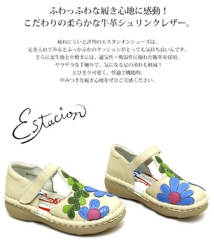 MSE131A-1【レディース】Estacion~エスタシオン~・フラワーモチーフ本革ストラップパンプス
