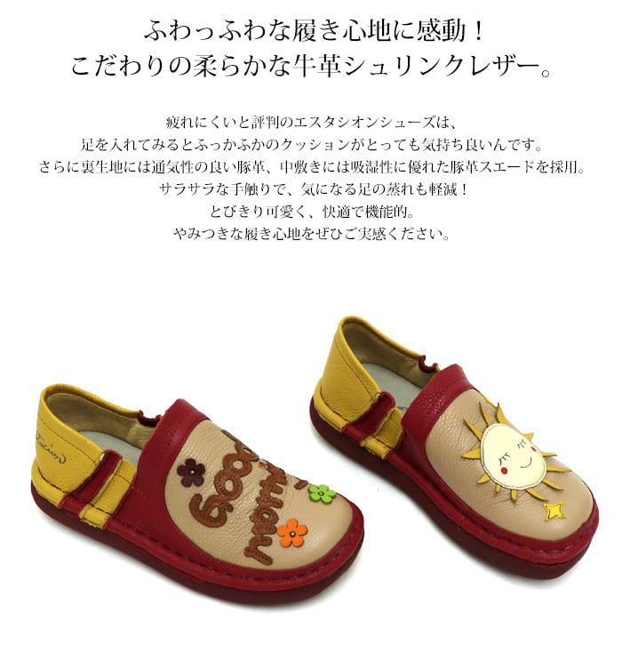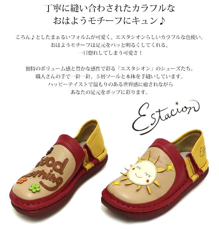 TGXE629【レディース】Estacion~エスタシオン~・おはようモチーフ本革スリッポンシューズ